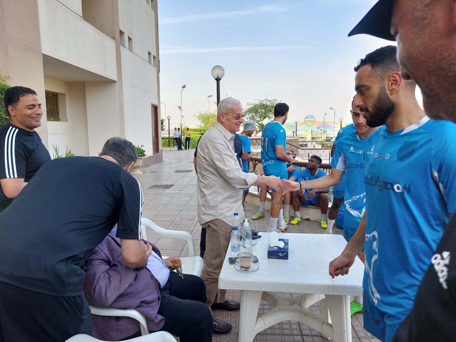 رئيس المقاولون العرب يحفز اللاعبين قبل مواجهة حرس الحدود في الدوري