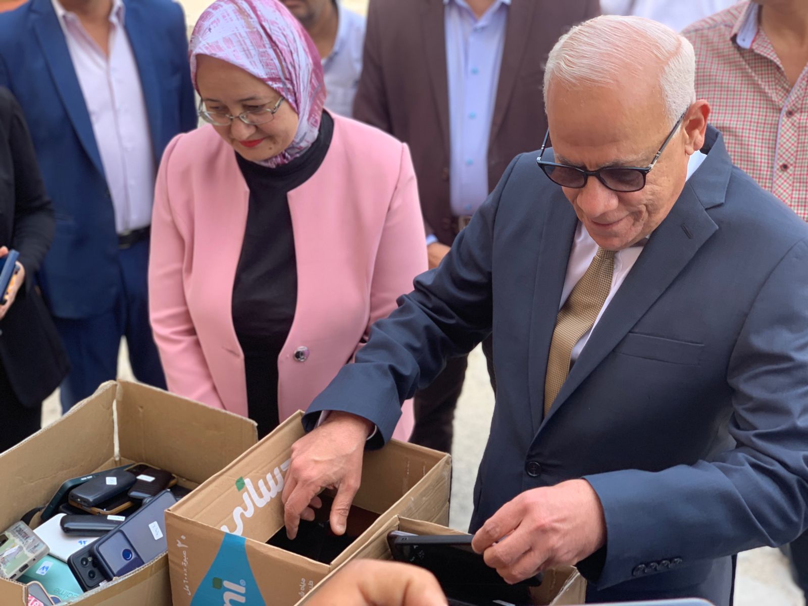 ووضع المشروفون الهواتف المحمولة في كراتين علي أبواب اللجان، وذلك بعد أن تم جمعها من الطلاب والطالبات، وتم ترقيم كل منها بمسلسل، وذلك حتي يسهل علي كل طالب الحصول علي هاتفه مع الخروج.