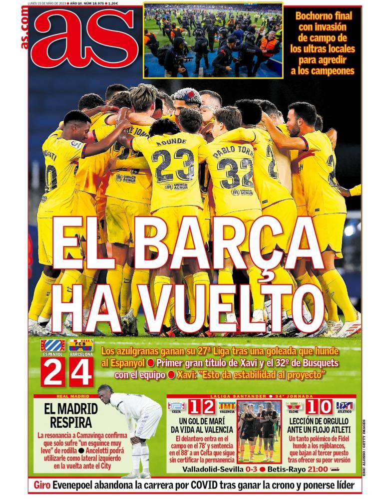 "أبطال الليجا".. تتويج برشلونة على رأس عناوين صحف العالم