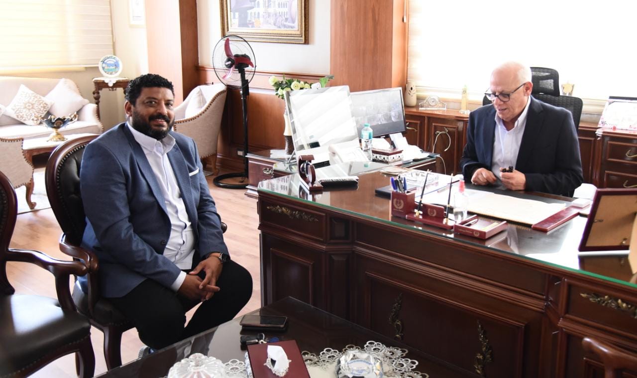 استقبل اللواء عادل الغضبان محافظ بورسعيد، اليوم، المخرج عمرو عجمي مدير الفنون الاستعراضية والشعبية بأكاديمية عجميات للفنون، بديوان عام المحافظة.