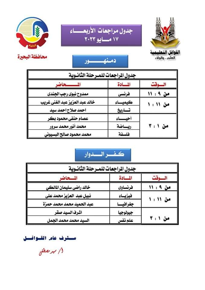 وأعلن يوسف الديب وكيل وزارة التربية والتعليم عن وصول قطار القوافل التعليمية المجانية فى المراجعات النهائية للشهادة الثانوية العامة بقسميها العلمى والادبى وبدء فعالياتها اعتبارا من اليوم الأربعاء ١٧متيو وحتى يوم الجمعة ١٩مايو حيث تم إعداد وتجهيز مقر القافلة لطلبة وطالبات إدارتي بندر ومركز دمنهور بمجمع دمنهور الثقافى .