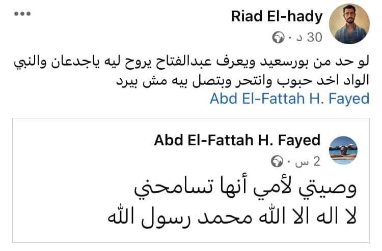 وصيتي لأمي أنها تسامحني.. شاب يترك رسالة مؤثرة ويحاول إنهاء حياته ببورسعيد
