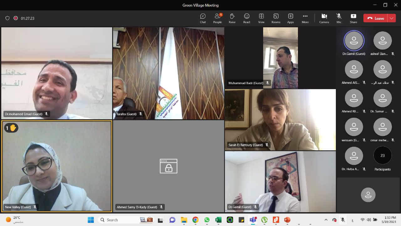عقدت وزارة التخطيط والتنمية الاقتصادية، ممثلاً عنها الدكتور جميل حلمي، مساعد الوزيرة لمتابعة خطة التنمية المستدامة، ورشة عمل عبر تقنية الفيديو كونفرانس، لمناقشة الخطوات التنفيذية للمرحلة الأولى من مُبادرة "القرية الخضراء"، ضمن المشروع القومي لتطوير الريف المصري "حياة كريمة"، بمشاركة نواب المحافظين في 4 محافظات هي (الوادي الجديد، سوهاج، الفيوم، الشرقية)، والمهندسة سارة البطوطي، رئيس مجلس إدارة شركة "إي كونسلت" للاستشارات الهندسية والبييئة.