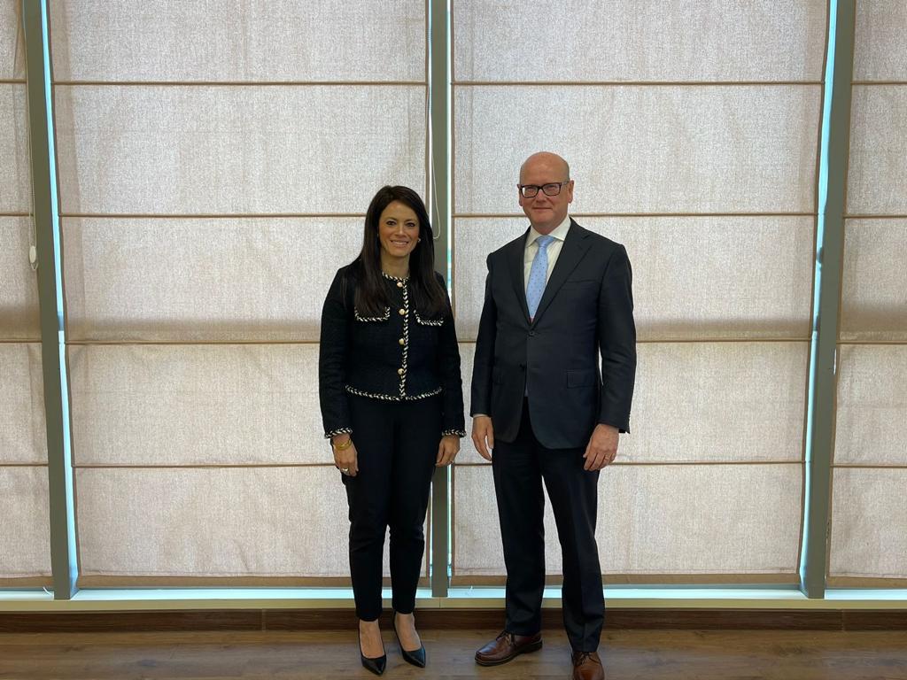 وبحثت وزيرة التعاون الدولي، مع السيدة إلكي كالينبا، المحافظ المناوب لألمانيا بمجلس محافظي البنك الأوروبي وممثل وزارة المالية الاتحادية بألمانيا، حيث تم خلال القاء بحث التعاون الثنائي بين جمهورية مصر العربية وألمانيا الاتحادية، والجهود المشتركة لتعزيز التعاون في تنفيذ محور الطاقة ضمن المنصة الوطنية للمشروعات الخضراء برنامج " نُوَفِّي"، استنادًا إلى الإعلان السياسي الذي أعلنته الولايات المتحدة الأمريكية وألمانيا الاتحادية ومصر، حيث تعهدت فيه ألمانيا بتقديم تمويلات تنموية لدعم مشروعات محور الطاقة بالبرنامج، من بينها مبادلة ديون.