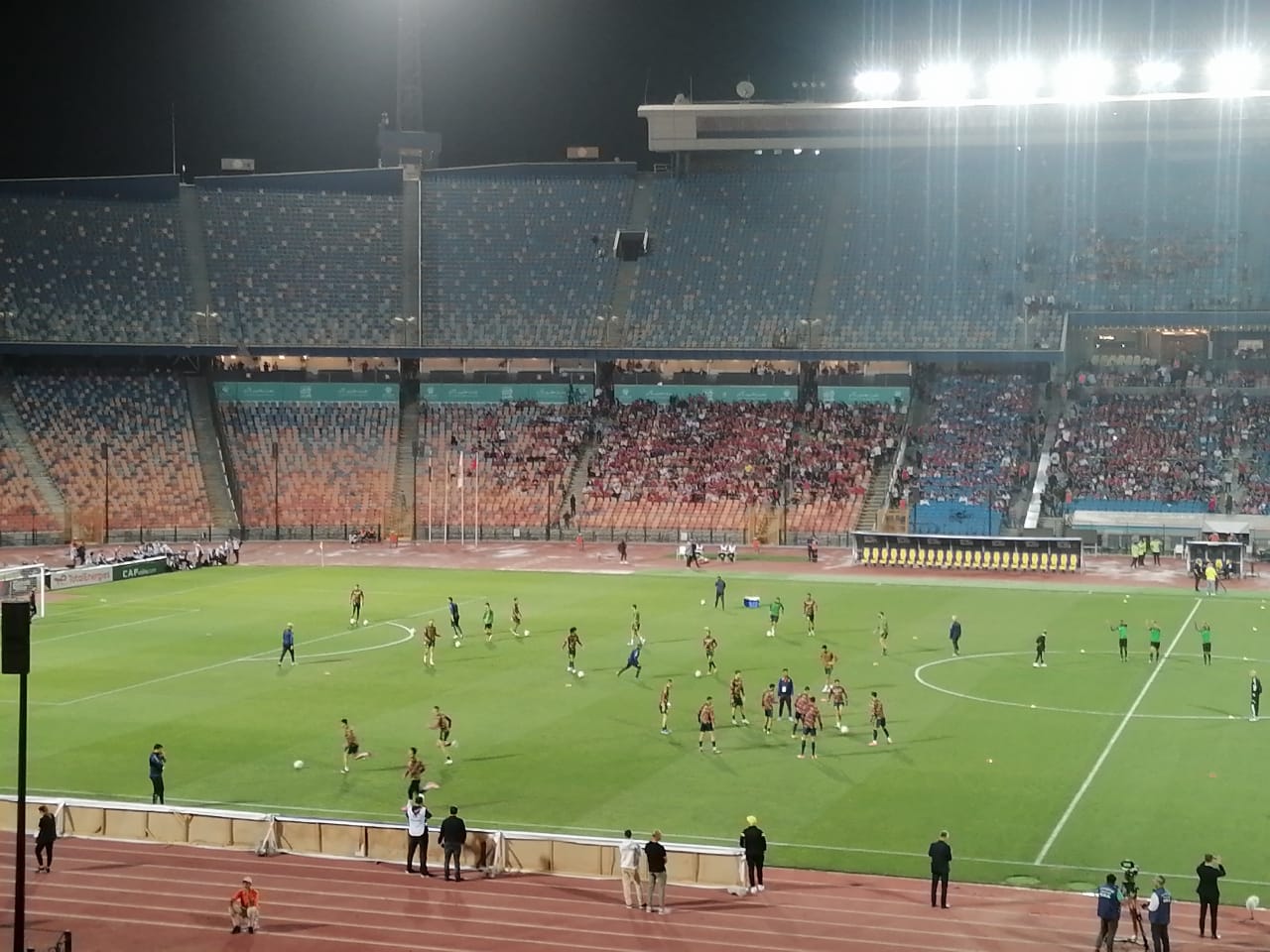 نزل لاعبو الأهلي والترجي التونسي إلى أرضية ملعب استاد القاهرة الدولي، لإجراء عمليات الإحماء استعداداً للمواجهة المرتقبة بينهما في دوري أبطال إفريقيا.