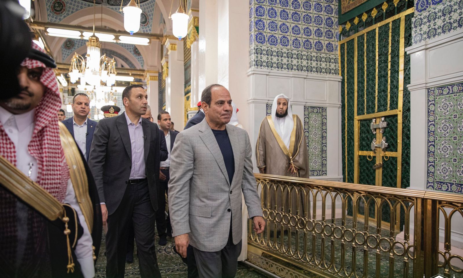 الرئيس السيسي يصلي بالمسجد النبوي بالمدينة المنورة بعد حضور قمة جدة