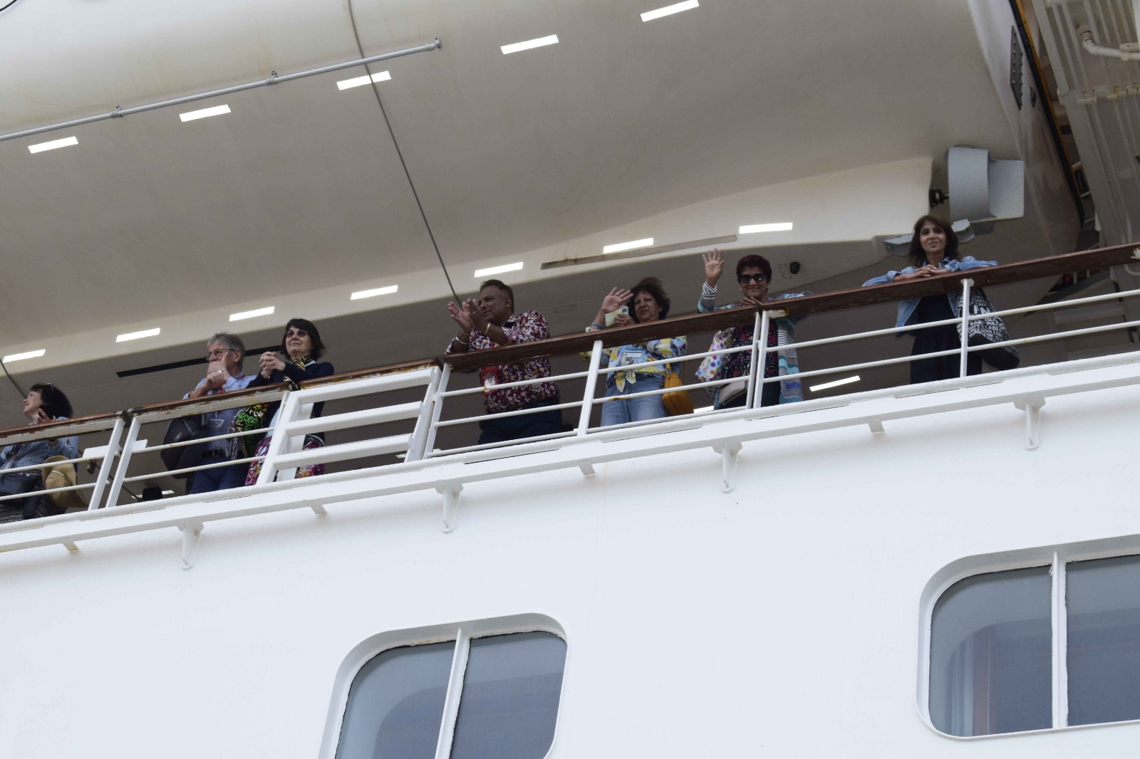 كان فى استقبال السفينة فرق الفنون الشعبية بأغانى السمسمية التراثية والرقصات الاستعراضية الخاصة بهم والتى تعبر عن تراث المحافظة فرقة الفنان عمرو عجمي .