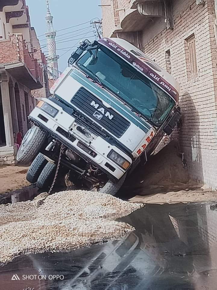 مصرع شخصين إثر انقلاب سيارة تريلا داخل بيارة صرف صحي بالفيوم
