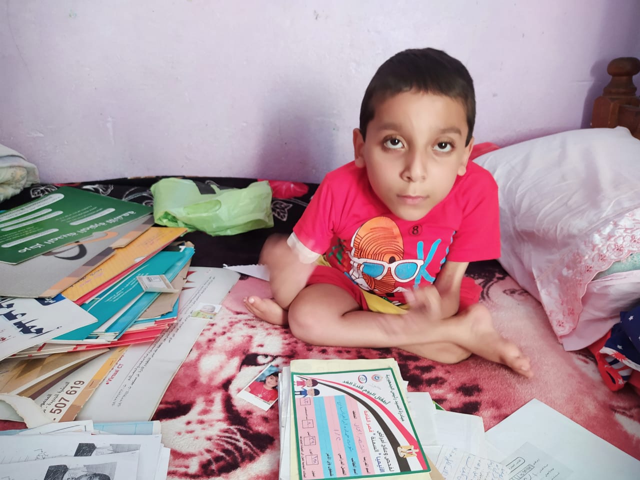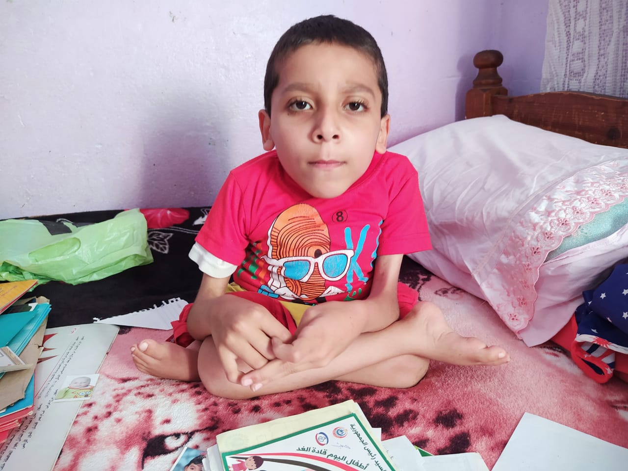 وأشار والد الطفل إبراهيم بأن "كل مايكبر كل ما المشكلة بتزيد ، موضحا من أسباب الكحة وكرشة النفس هي التواء في العمود الفقري ،برغم لديه مشكلة في الرجلين عند الطفل إبراهيم والمشاكل كل يوم بتزيد .