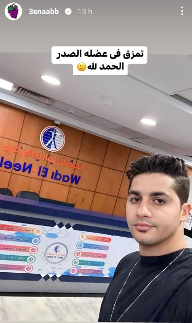 نشر عنبة ستوري عبر حسابه الرسمي على إنستجرام من داخل أحد المراكز الطبية، وعلق عليها قائلًا:" تمزق في عضلة الصدر.. الحمد لله".