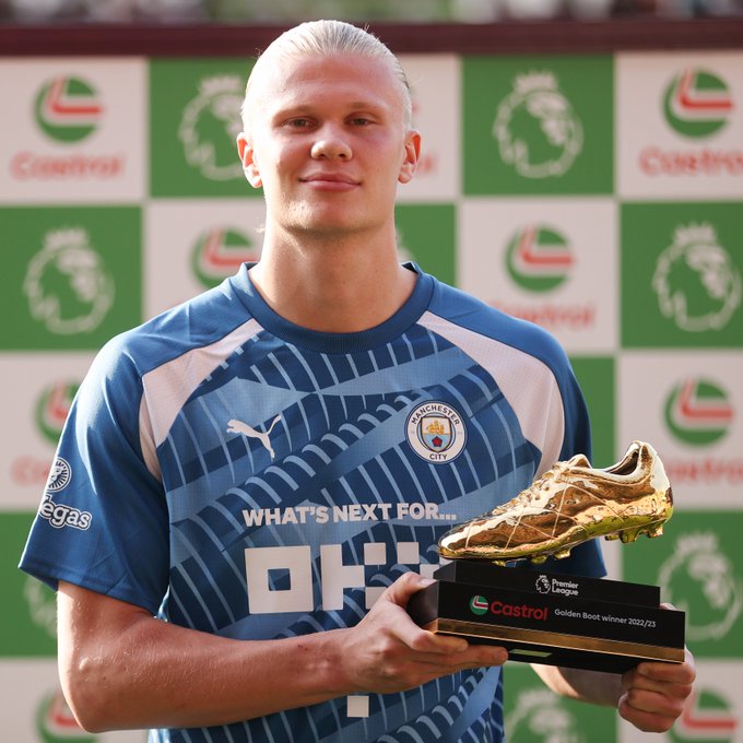 ترتيب هدافي الدوري الانجليزي ..وسبق وأعلن من قبل فريق مانشستر سيتي عن فوز هالاند بجائزة أفضل لاعب في إنجلترا بعدما حصل على 82% من الأصوات، متقدمًا على بوكايو ساكا لاعب أرسنال ومارتن أوديجارد.