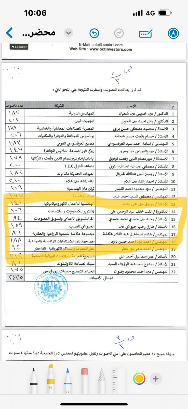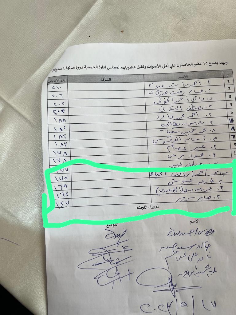وكشفت المذكرة، التي تقدم بها عضو مجلس الإدارة السابق وحيد حمدي، أن الأمين العام للجمعية " عبد المجيد زيد"، أعلن أنتهاء التصويت عند الثانية عشر صباحاً، وأن عدد الحاضرين وصل لـ 210 عضو من أصل 415 لهم حق التصويت، وسمح بالتوقيع بالمخالفة للقوانين وتحديداً المادة رقم 27 من لائحة النظام، بالإضافة إلي السماح بالتصويت لـ 35 عضو دون التحقق من مستندات شخصية وهو يبطل الانتخابات، بالإضافة إلي أنة لم يتم الإعلان عن نتائج الفرز والإكتفاء بإعلان نتائج الفائزين الـ 15.