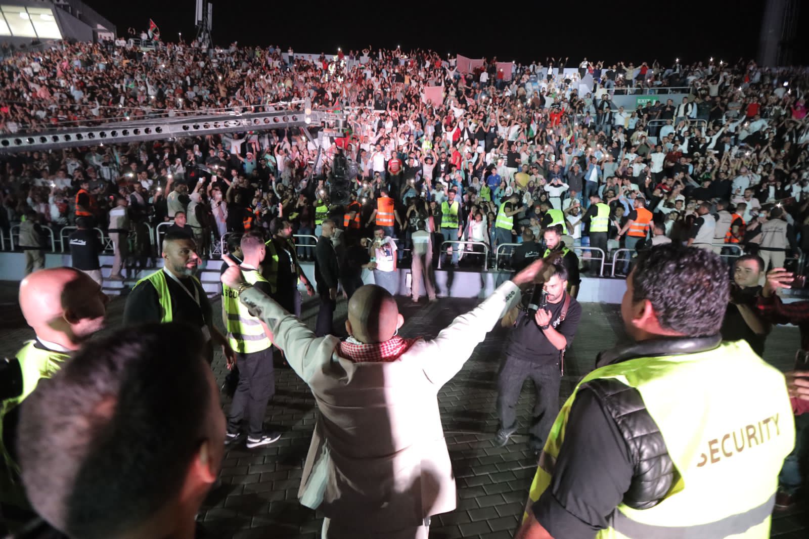وقال أحمد سعد للجمهور أثناء بدء الحفلة " جيت من مصر بالحب والمباركة من كل المصريين لولي عهد الأردن سمو الأمير حسين بن عبدالله الثاني على زفافه على الأنسة رجوه خالد السيف في فرحه.