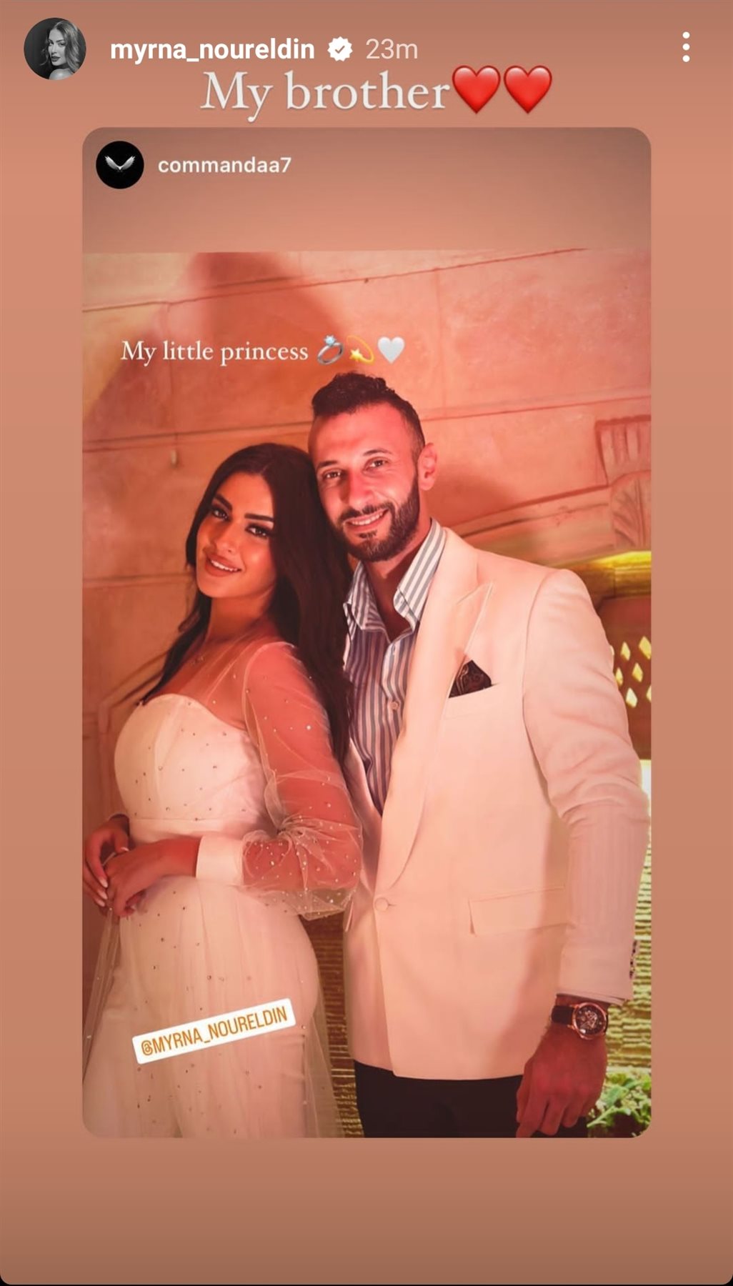 ميرنا نور الدين.. ونشرت ميرنا نور الدين عدد من الصورة بصحبة زوجها عبر حسابها الشخصى على موقع تبادل الصور والفيديوهات"إنستجرام" وعلقت قائلة: "الحمد لله كتبنا الكتاب".