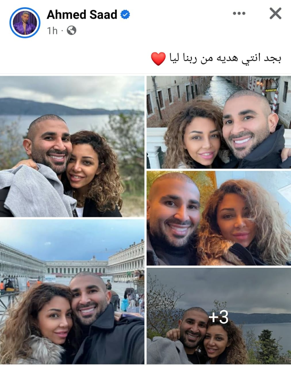 نشر أحمد سعد مجموعة من الصور التي تجمهم عبر صفحته على موقع التواصل الإجتماعي “الفيسبوك” وعلق عليها:" بجد إنتي هدية ربنا ليا".