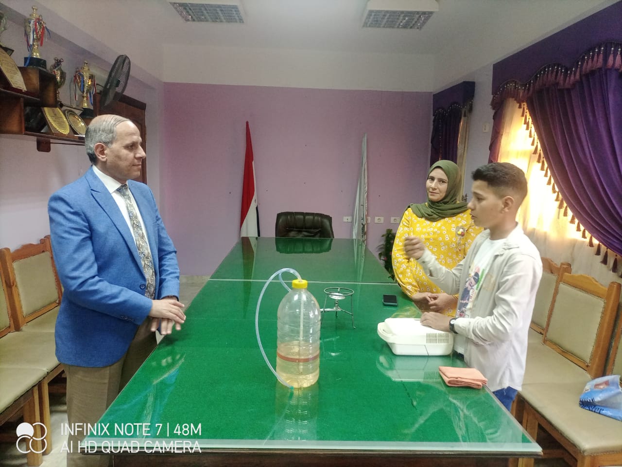 وأشاد وكيل الوزارة، بالطالب لتعدد اختراعاته، واخرها طريقة باشغال البوتجاز بخليط من الماء والبنزين" 3 لتر ماء -لتر بنزين"، وتكفي الكمية لاشعال البوتجاز لمدة 48ساعة، موجها الشكر للطالب وأسرته.