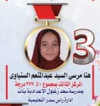 هنا مرسي السيد عبد المنعم السنباوى المركز الثالث بمجموع 277 50 درجة مدرسة سعد زغلول الاعدادية بنات ادارة رأس سدر التعليمية