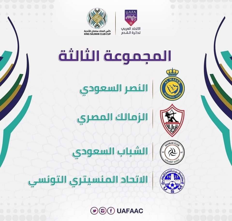 وينضم الفريق التونسي إلى المجموعة الثالثة، التى تضم كلاً من: الزمالك المصري، النصر والشباب السعوديين.