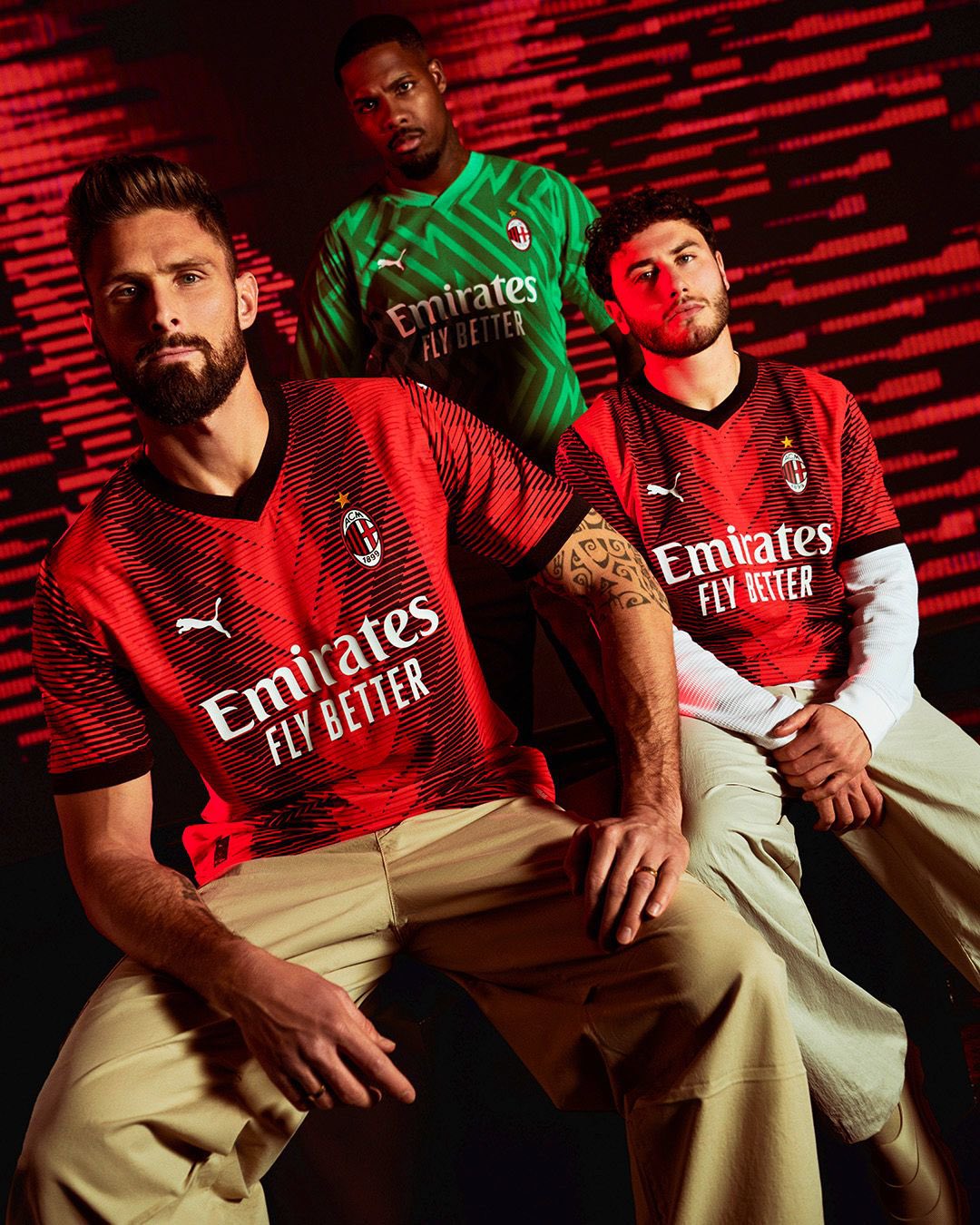 كشف نادي ميلان الإيطالي، بشكل رسمي عن قميصه للموسم الجديد 2023-2024، ونشر النادي على صفحة التواصل الاجتماعي توتير صوراً من القميص الجديد، الذي يجمع في تصميمه بـ 3 ألوان هي الأحمر والأبيض والأسود.
