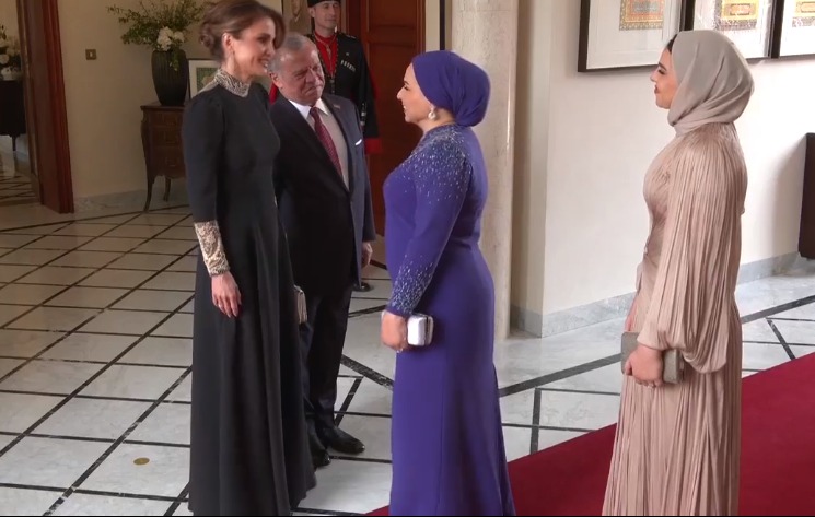 واحتفلت الملكة رانيا بحفل حناء زفاف ابنها ولي عهد الأردن الأمير الحسين فى أجواء تراثية وتقاليد المملكة الأردنية الهاشمية ، وظهرت العروسة وهى ترتدي فستان أنيق.