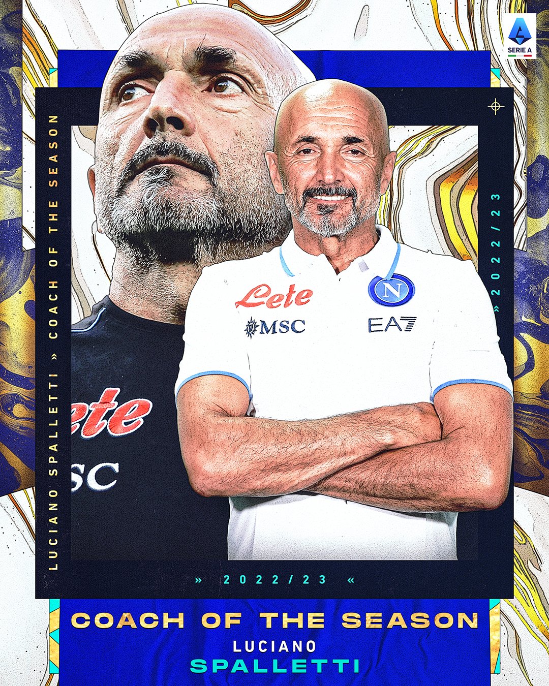 أعلنت رابطة الدوري الإيطالي، عن فوز لوسيانو سباليتي المدير الفني لفريق نابولي بجائزة أفضل مدرب في الكالتشيو لموسم 2022-2023 بعدما قاد فريقه للتتويج باللقب.