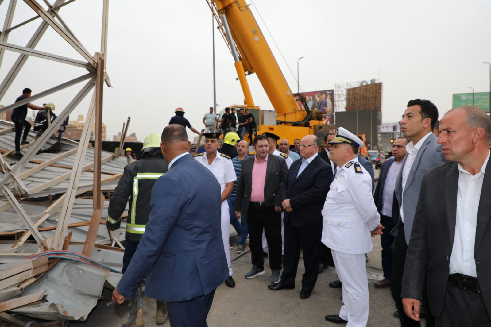 محافظ القاهرة يتفقد أعمال رفع حطام اللوحة الإعلانية التى سقطت فوق كوبرى أكتوبر