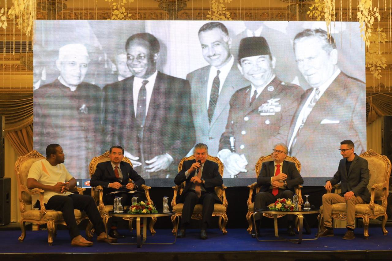 وتناولت أولى جلسات اليوم بحضور المهندس عبد الحكيم عبد الناصر نجل الرئيس الراحل جمال عبد الناصر ، أميروسلاف شيستوفيتش - سفير صربيا ، لطفي رؤوف - سفير أندونسيا ، الجا محمد أدو مؤسس بنك الطعام للجميع بغانا قراءة ذاتية عن مؤسسي حركة عدم الإنحياز .