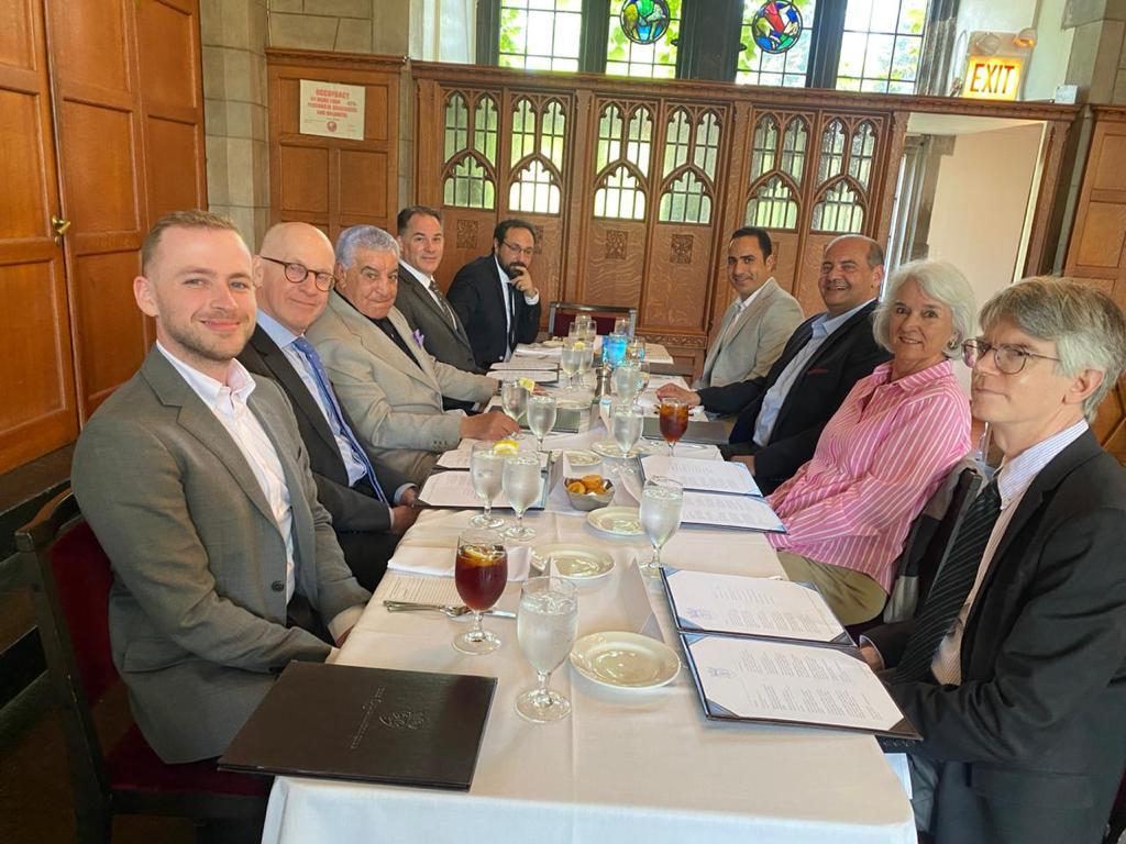 نظم السفير الدكتور/ سامح ابو العينين قنصل عام مصر فى شيكاجو وولايات وسط الغرب الامريكى غداء عمل على شرف عالم الاثار المصرى العالمى الدكتور زاهى حواس بالتنسيق مع رئيس متحف الدراسات الشرقية بجامعة شيكاجو بحضور هيئـة التدريس من اساتذة وخبراء علوم الاثار والمصريات من المعهد والجامعة.