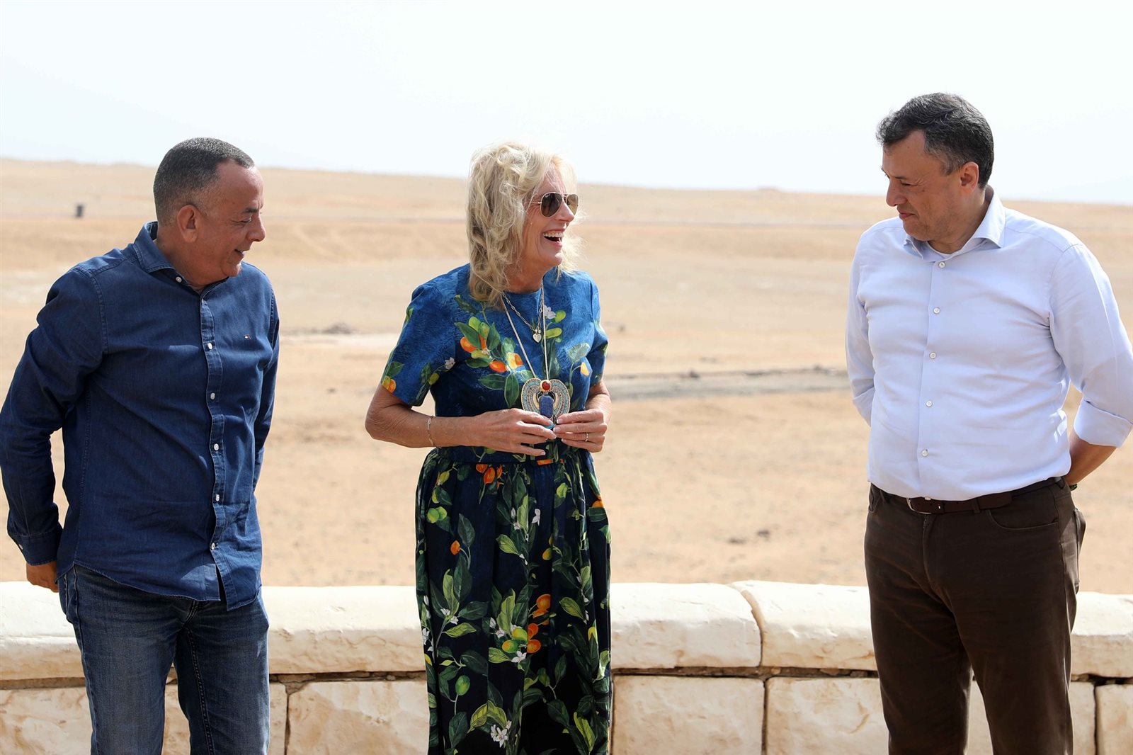 وحرصت بايدن - التي عبرت بنظراتها وابتسامتها عن انبهارها بالحضارة المصرية على التقاط الصور التذكارية والاستمتاع بكل لحظة وخطوة فى هذه المنطقة الشاهدة على عظمة مصر وحضارتها وتاريخها.