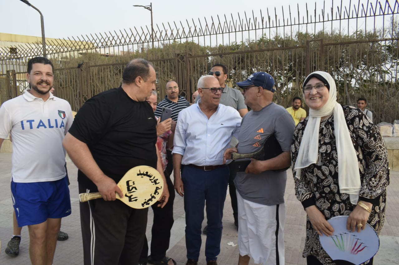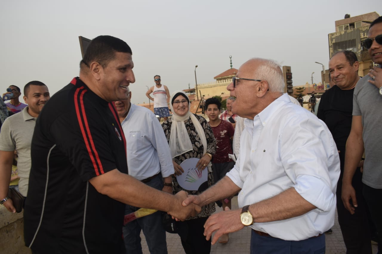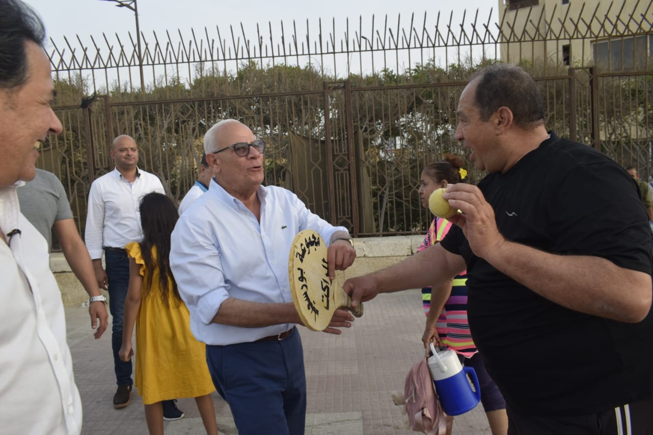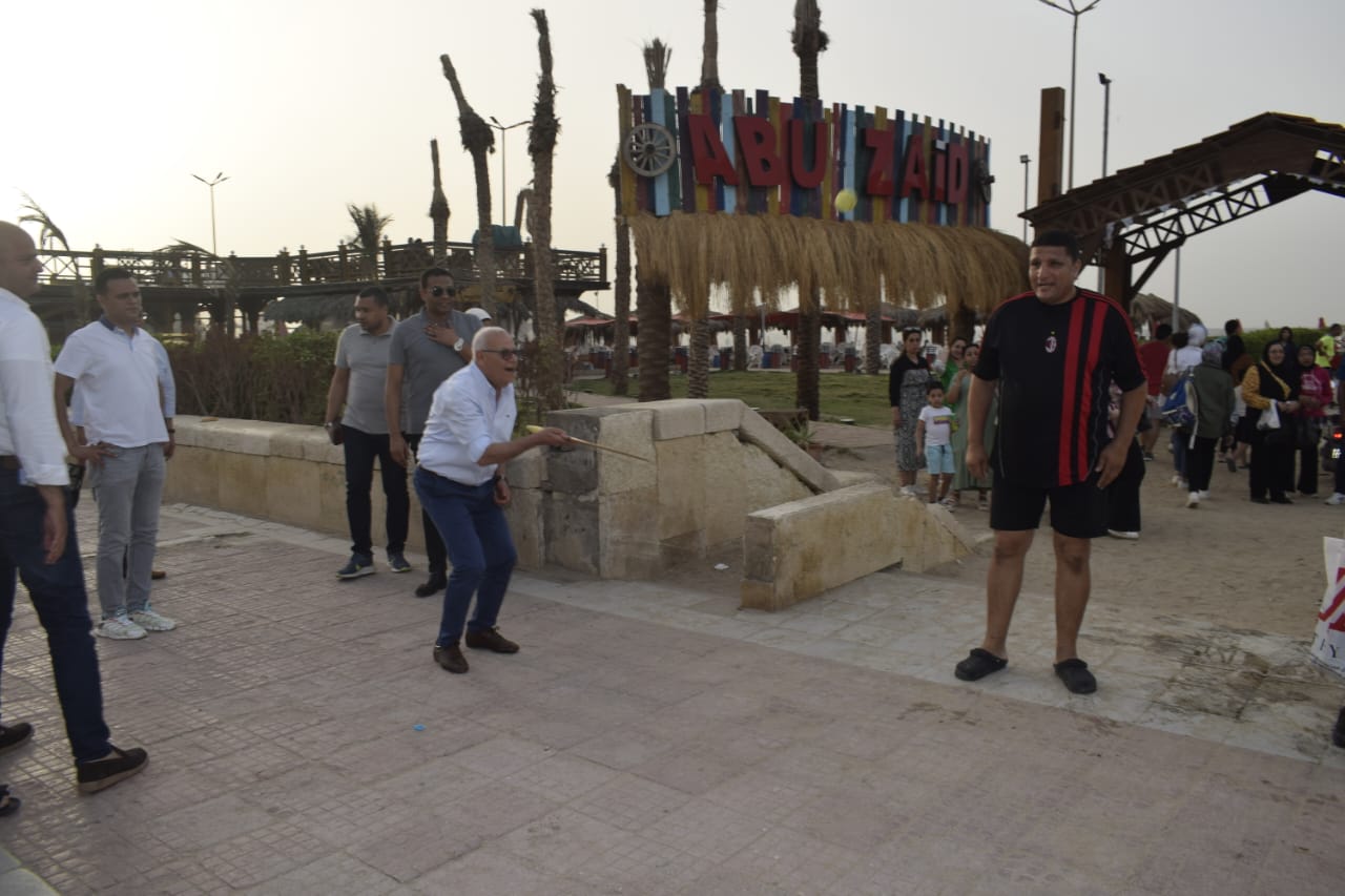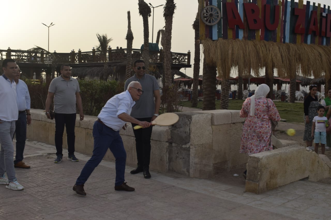 محافظ بورسعيد يشارك رواد الشاطىء رياضة "الراكيت"