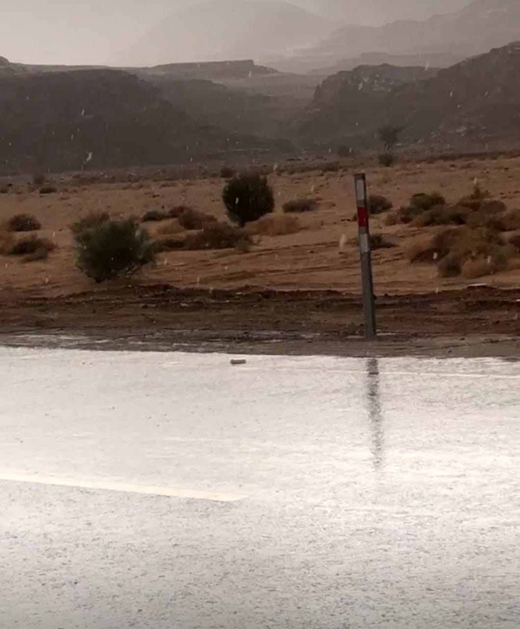سقوط أمطارمتوسطة بمنطقة السعال بمدينة سانت كاترين