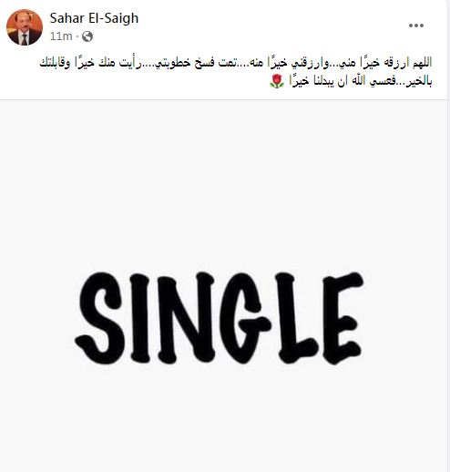 ونشرت سهر الصايغ منشور وكتبت: "اللهم ارزقه خيرًا مني وارزقني خيرًا منه تمت فسخ خطوبتي.. رأيت منك خيرًا وقابلتك بالخير.. فعسي الله أن يبدلنا خيرًا".