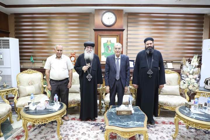 محافظ المنيا يستقبل الأنبا مكاريوس ووفداً من الكنيسة للتهنئة باستئناف عمله