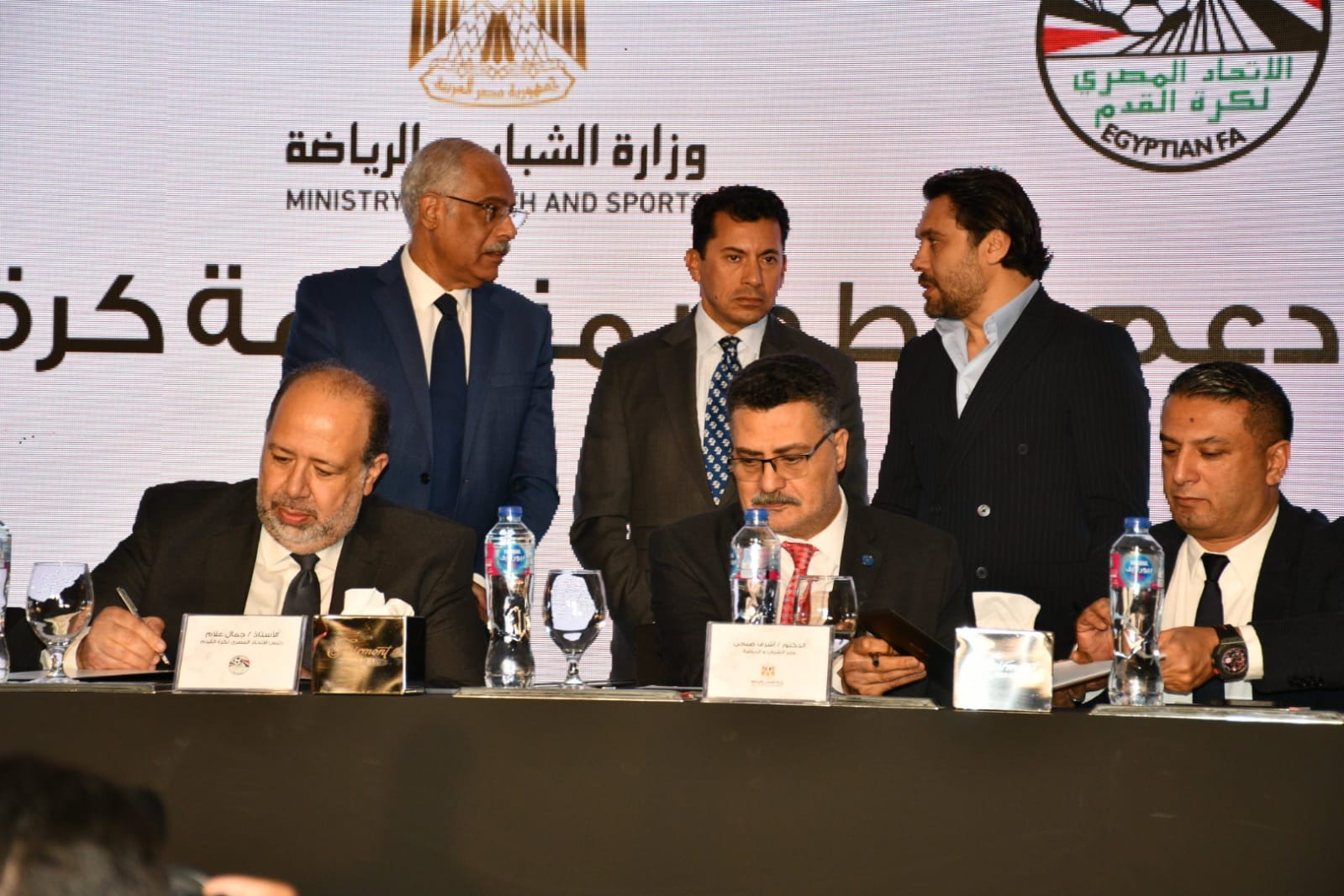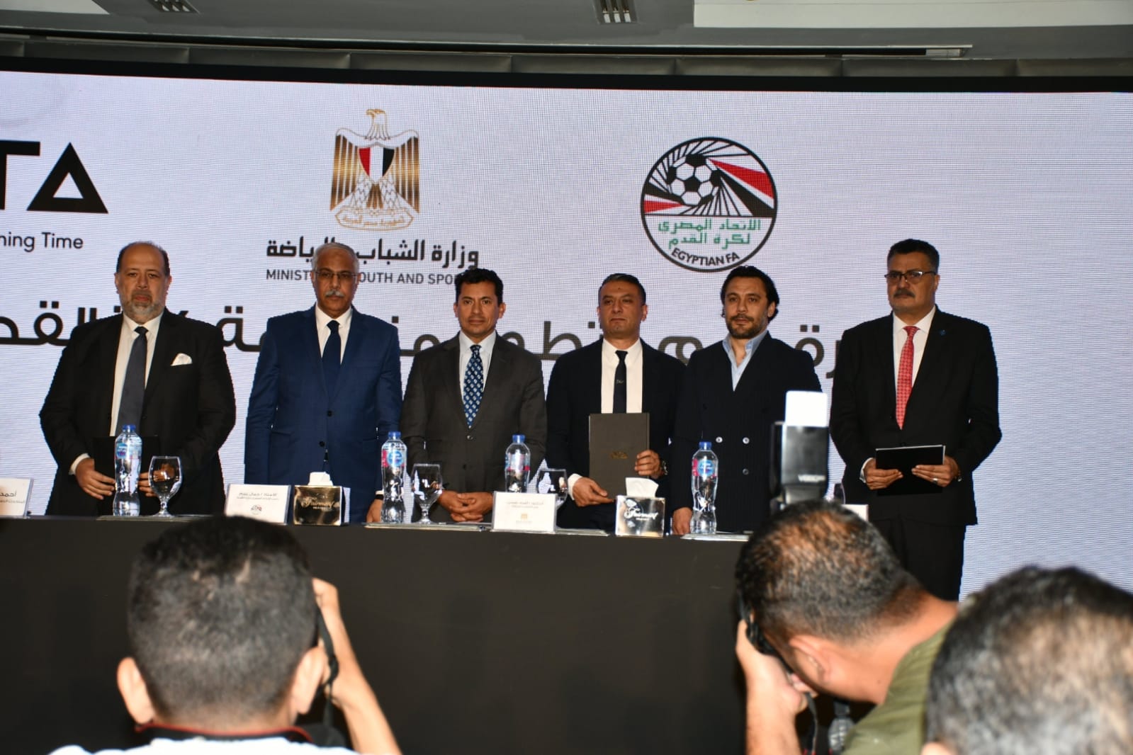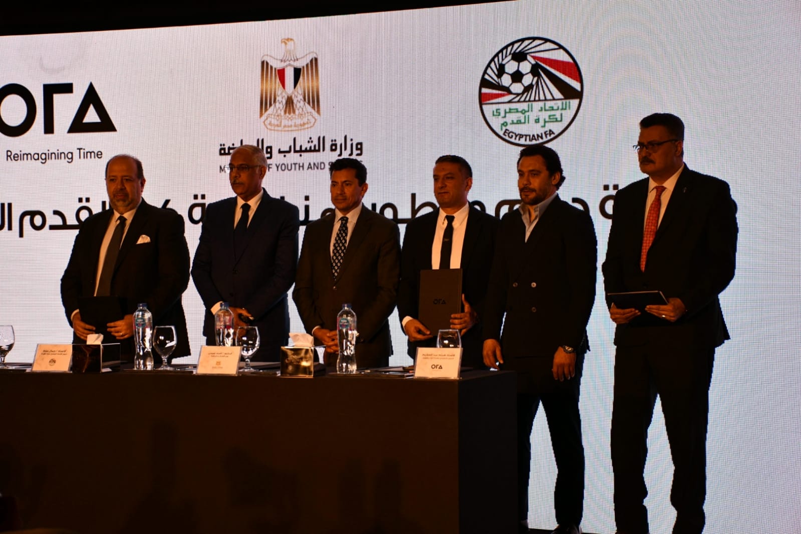 وقع برتوكول التعاون بين الوزارة والاتحاد والشركة، الدكتور عادل رضوان رئيس قطاع الرياضة بوزارة الشباب والرياضة، هيثم عبد العظيم الرئيس التنفيذي لشركة أورا، وليد العطار المدير التنفيذي للإتحاد المصري لكرة القدم.