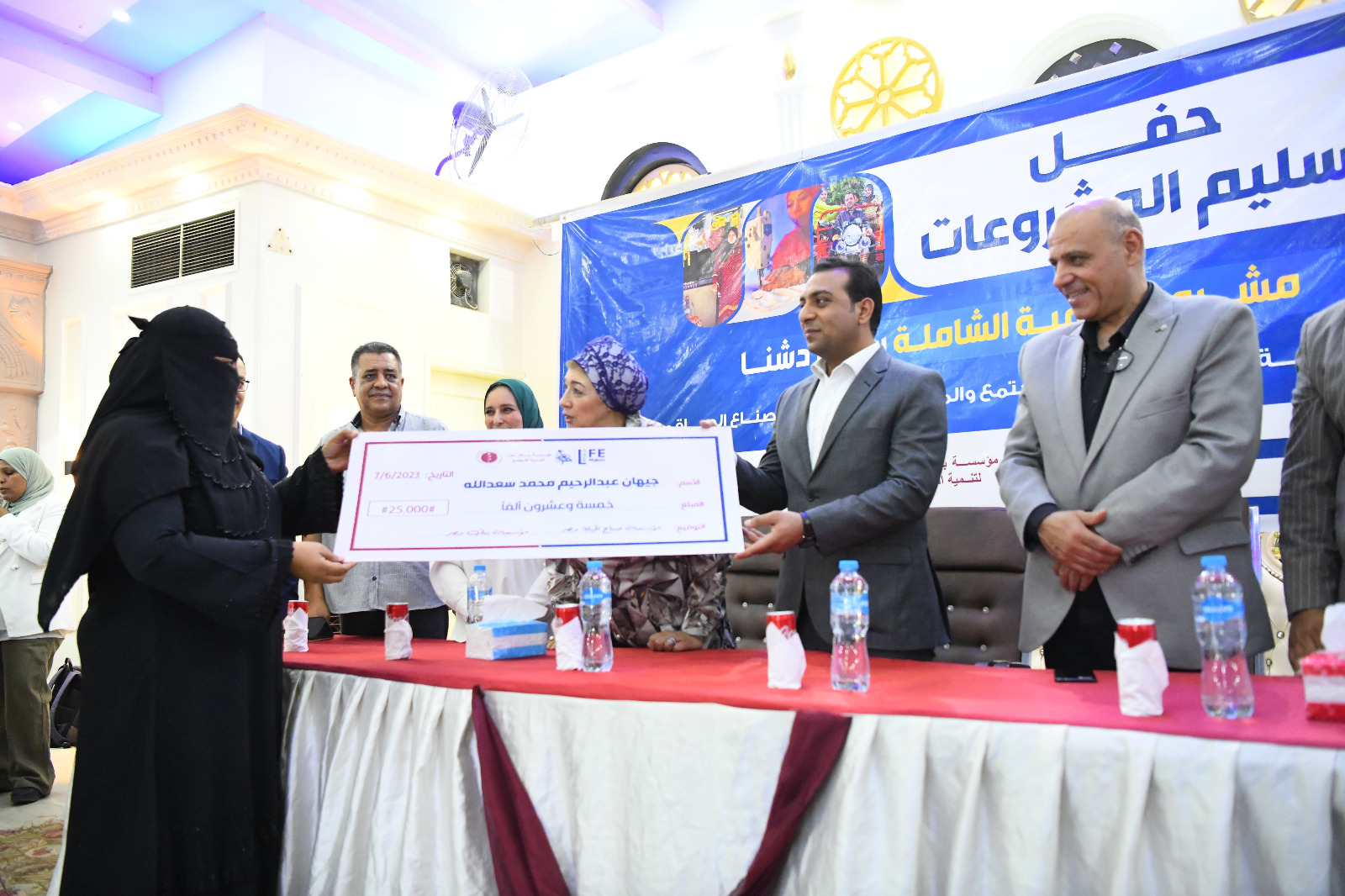 سلم الدكتور حازم عمر نائب المحافظ، عدد من المشروعات التنموية والأجهزة التعويضية بمركز دشنا ، ضمن التنمية الشاملة الممول من مؤسسة بنك مصر للتنمية بالتعاون مع مؤسسة صناع الحياة ويستهدف ١٧ قرية من قري المركز ، وذلك بحضور هناء البورينى مدير مؤسسة بنك مصر للتنمية ، و هبه حسين مديرة برامج المؤسسة، و حسن عثمان وكيل وزارة التضامن الاجتماعى، و احمد محمد مدير مؤسسة صناع الحياة بقنا.