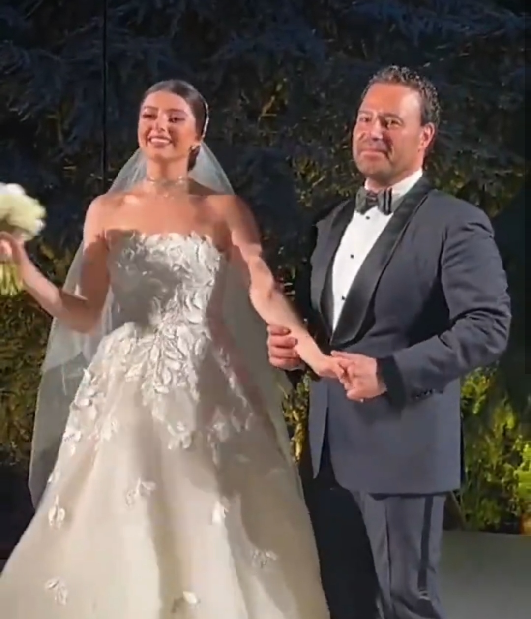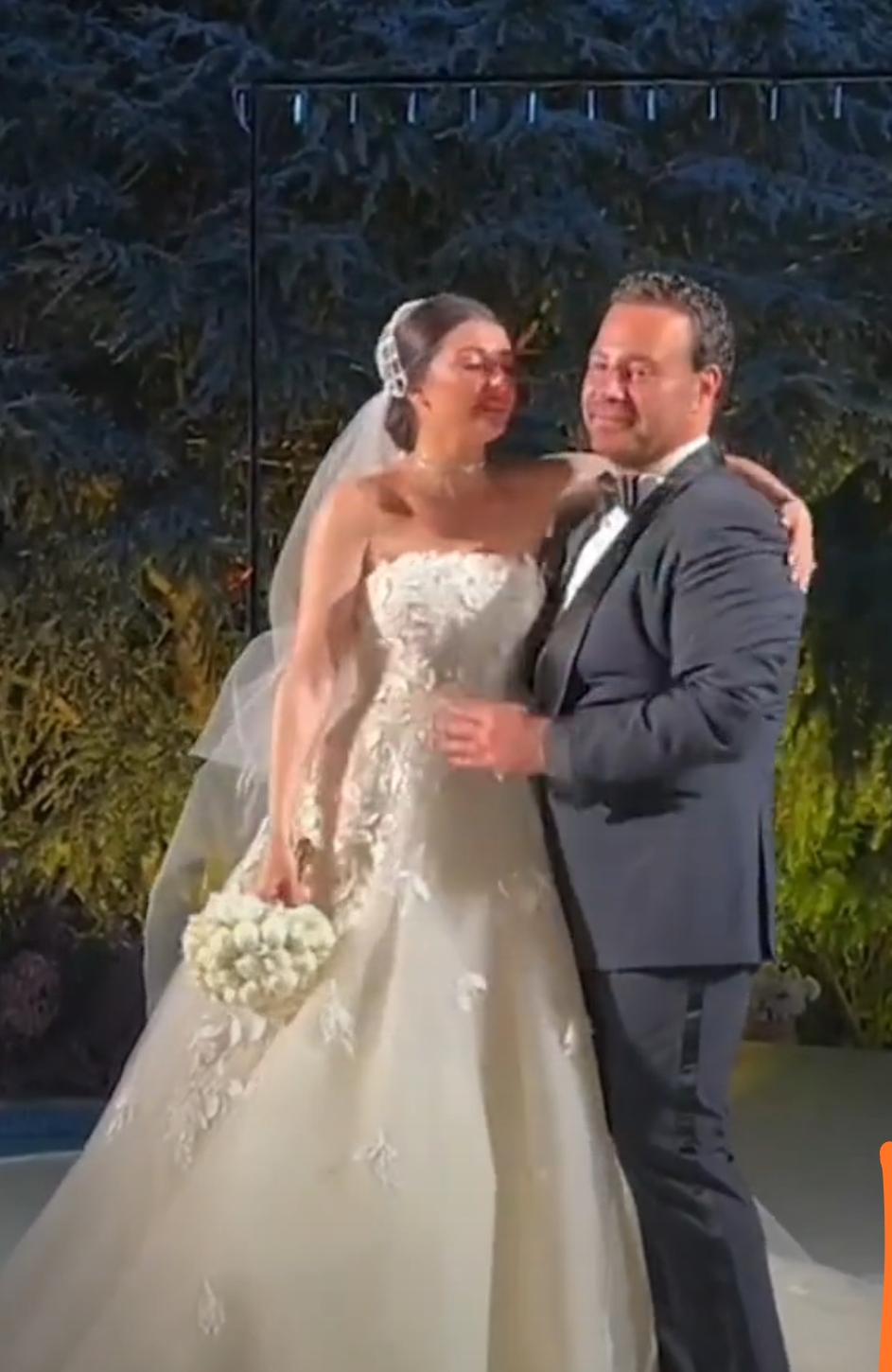 وانتشر عبر مواقع التواصل الاجتماعي فيديو لعاصي الحلاني وهو يوصل ابنته لزوجها كميل أبي خليل، ويرقص معها، ويبكي في أحضانها.