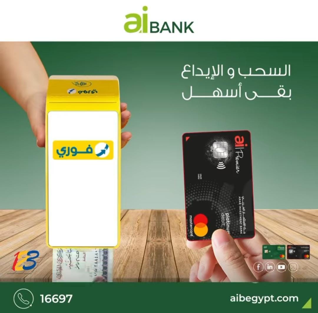 أعلن aiBANK عن إتاحة عمليات السحب والإيداع اللحظي ببطاقات الخصم المباشر عن طريق كل ماكينات شركة فوري، وذكر البنك أن خدمة السحب والإيداع عبر "فوري" متاحة فقط لبطاقة الخصم المباشر في الوقت الحالي.