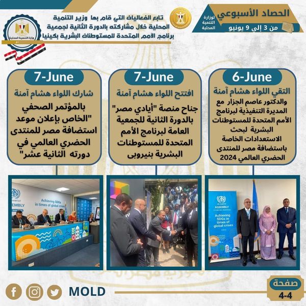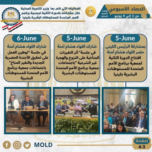 الحصاد الأسبوعي لأنشطة وزارة التنمية المحلية