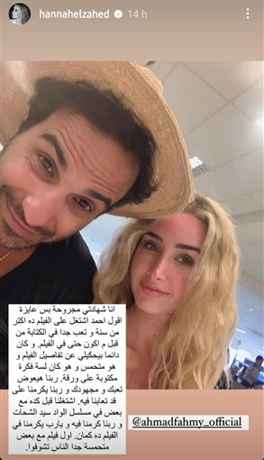 نشرت هنا الزاهد عبر خاصية القصص القصيرة في حسابها على موقع تبادل الصور والفيديوهات “انستجرام”، صورتها مع أحمد فهمي وكتبت لتحكي عن رحلته مع فيلم "مستر إكس".