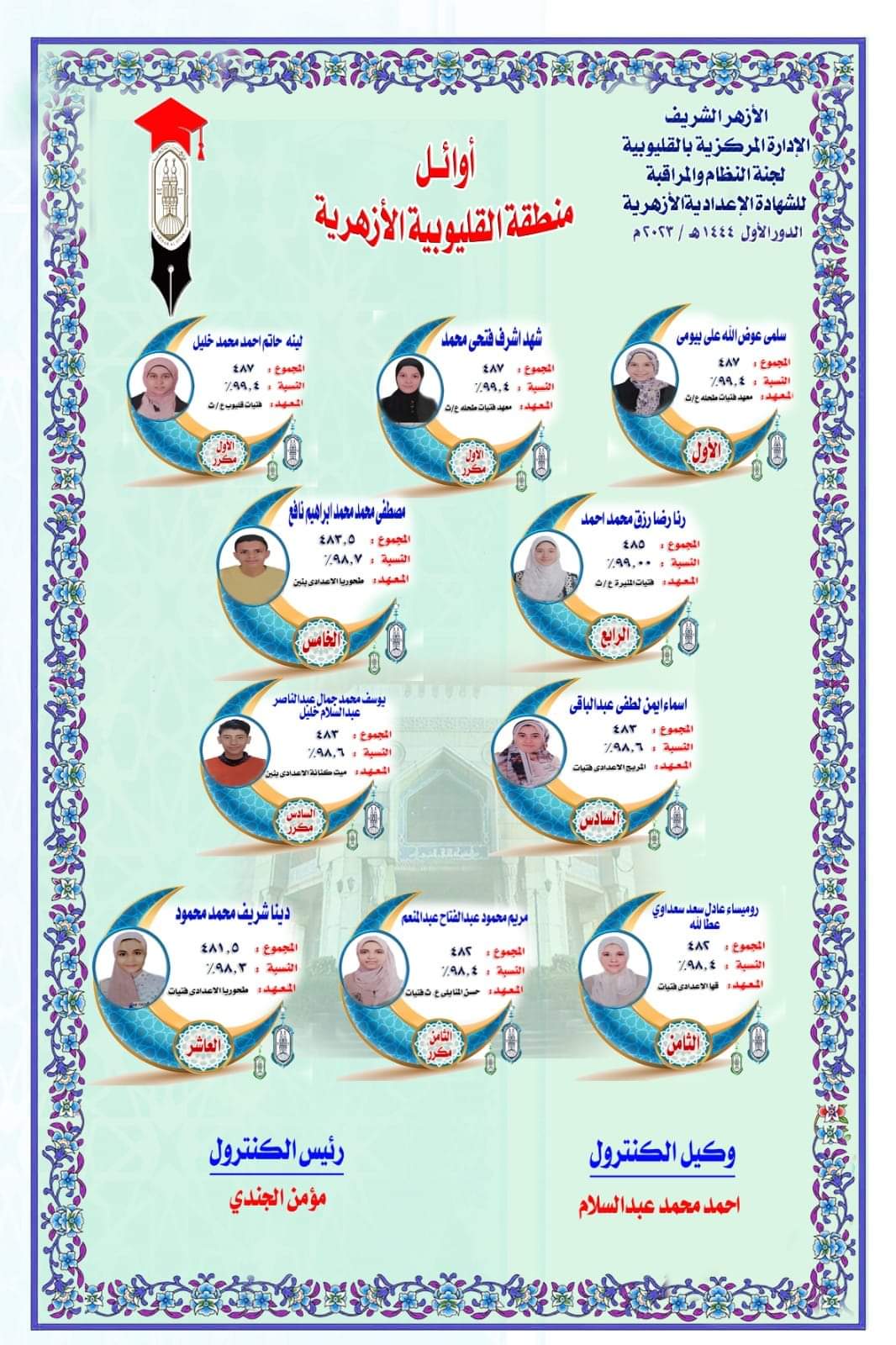 أوائل الشهادة الإعدادية الأزهرية 2023 بالقليوبية
