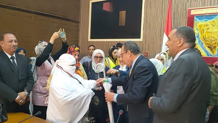 وقامت المحافظة بالتنسيق مع حزب مستقبل وطن بتوزيع المظلات الشمسية والوجبات الخفيفة والعصائر والمياه علي الحجاج قبل مغادرتهم مدينة العريش.
