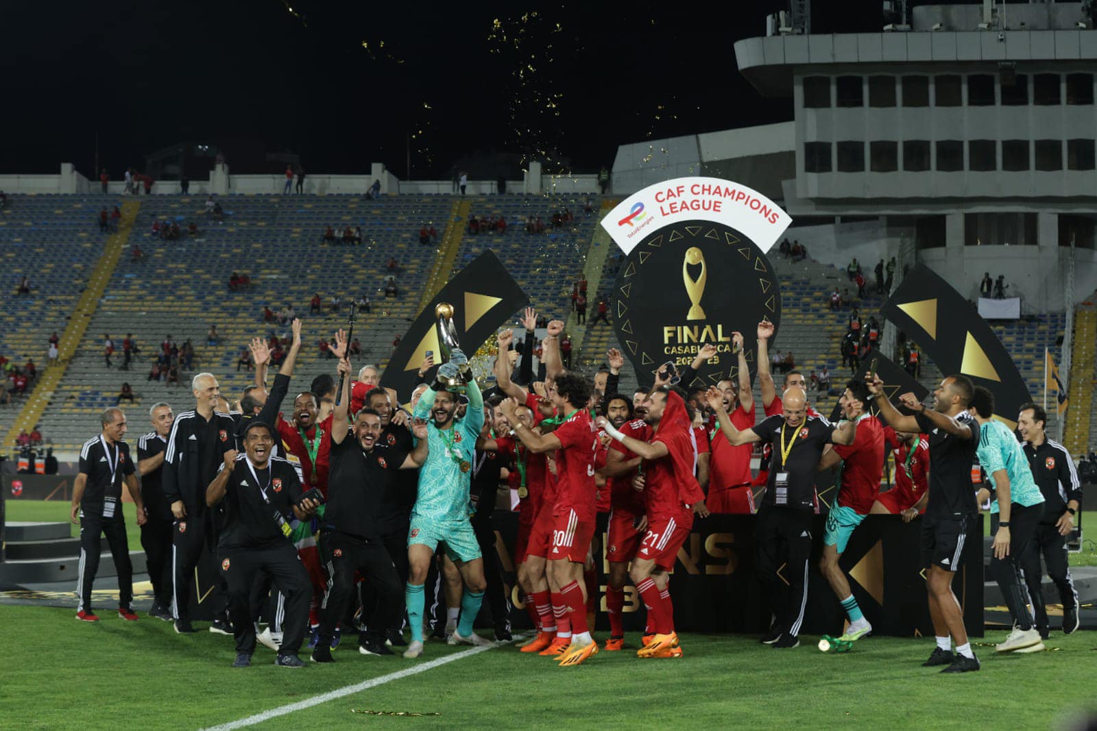 كاس العالم للاندية ..وتوج الفريق الاول لكرة القدم بالنادي الأهلي ببطولة دوري أبطال أفريقيا للمرة الحادية عشر في تاريخه، عقب الفوز على الوداد المغربي في المباراة التي أقيمت على ملعب محمد الخامس.