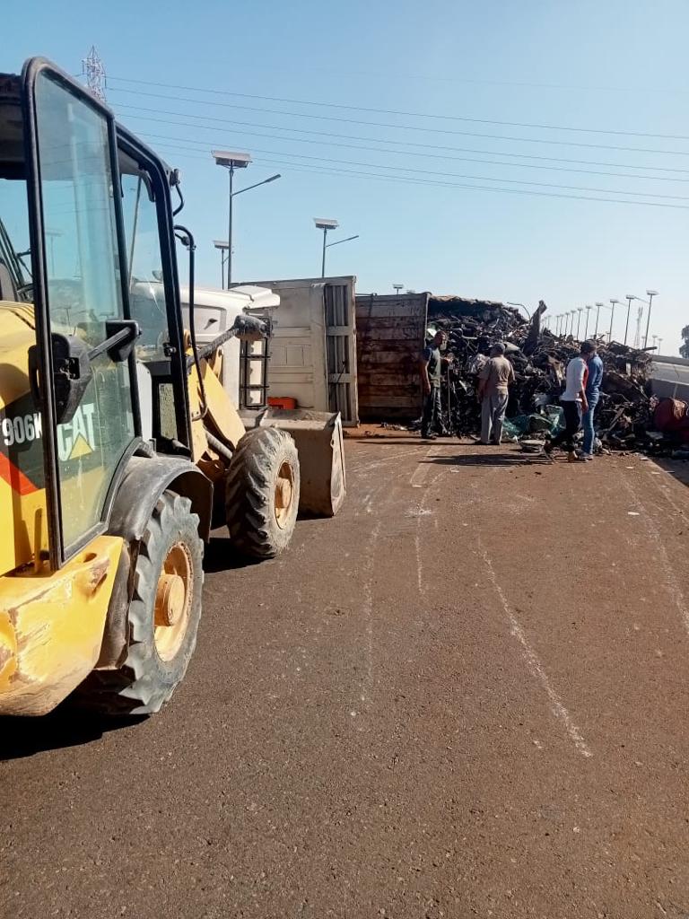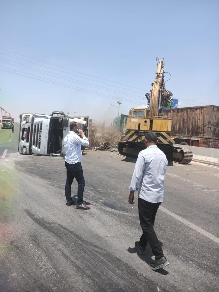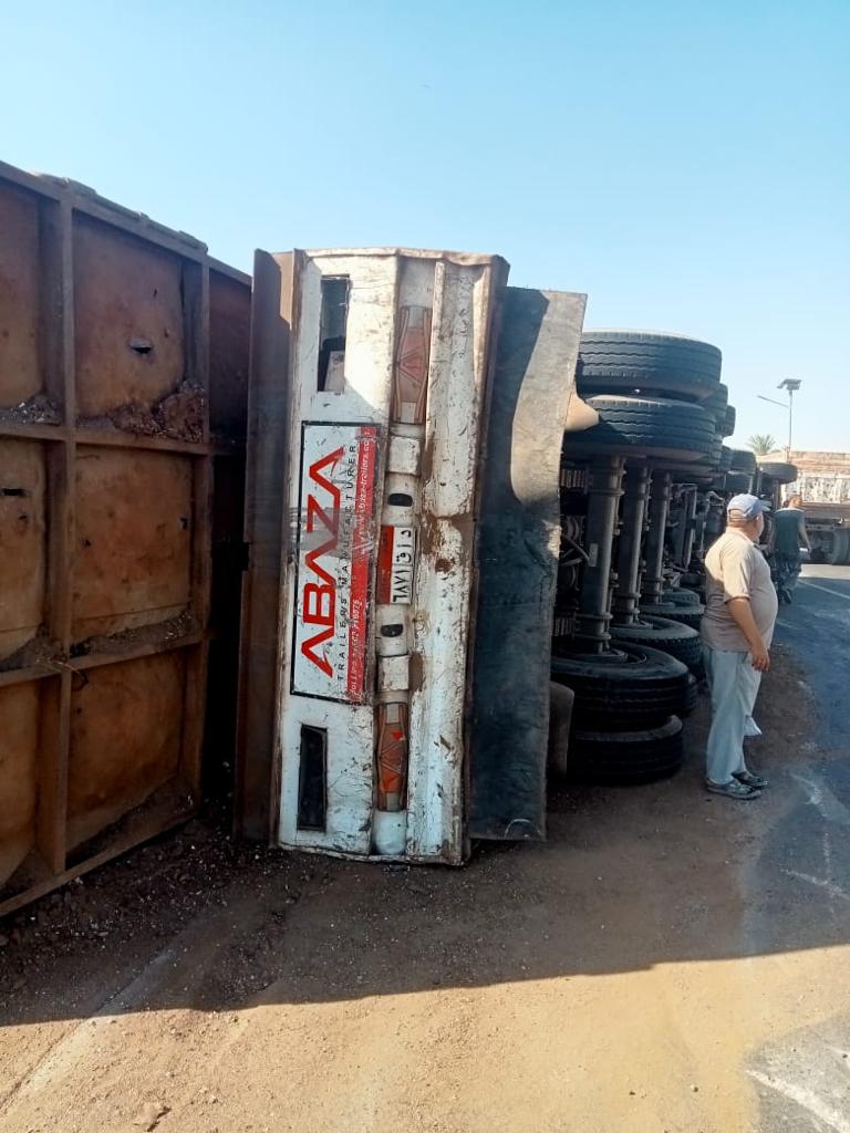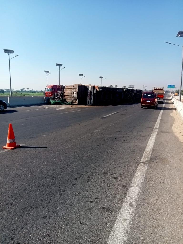 انقلاب سيارة نقل محملة بالخردة على محور 30 يونيو بالإسماعيلية