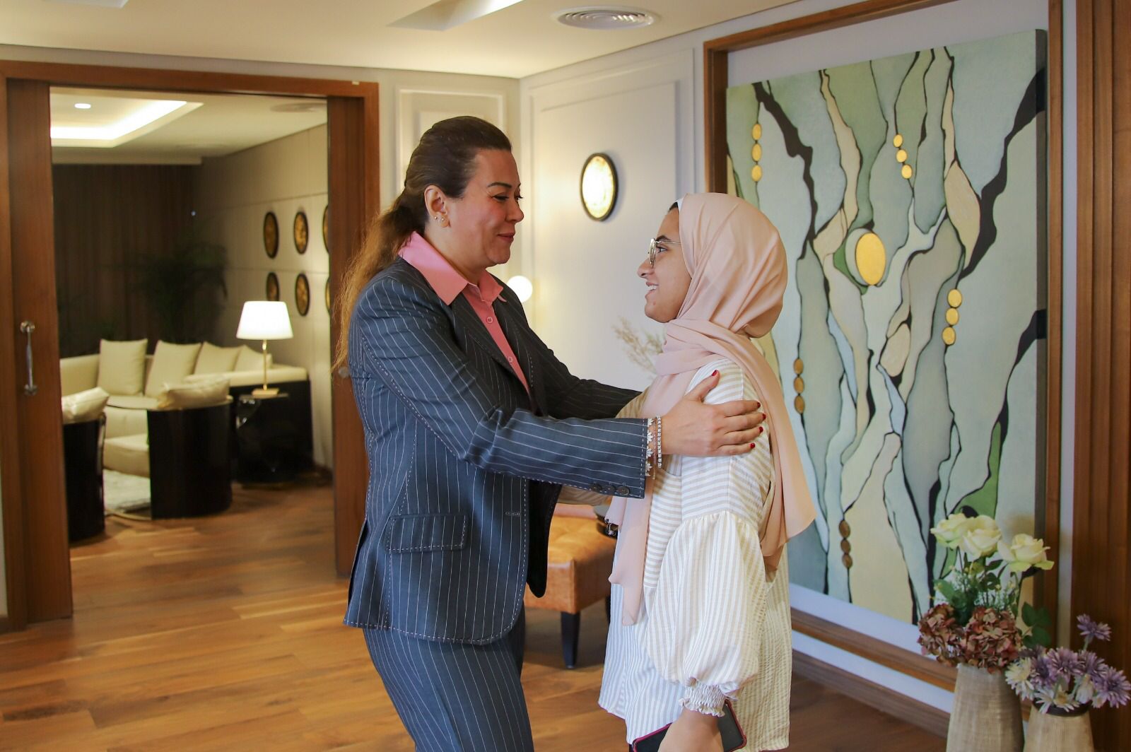 وفي بداية حديثها، رحبت الدكتورة رشا راغب بالطالبة منة الله، معربةً عن فخرها بتفوقها واجتهادها رغم الظروف والعقبات التي تواجهها والتي لم تمنعها من مواصلة تحقيق هدفها وحلمها من أجل الوصول إلى وجهتها المنشودة وهي الالتحاق بكلية الطب. كما شددت راغب على أن السيد الرئيس السيسي لديه اهتمام خاص بالشباب، فهم دائمًا في مقدمة الملفات التي يوليها سيادته اهتمامًا بالغًأ؛ إيمانا بأن شباب مصر هو ثروتها الحقيقية.