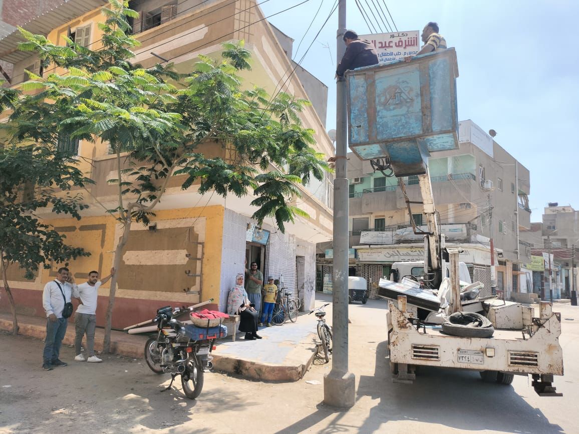 إزالة الإعلانات المخالفة خلال حملة بشوارع وميادين بيلا بكفر الشيخ