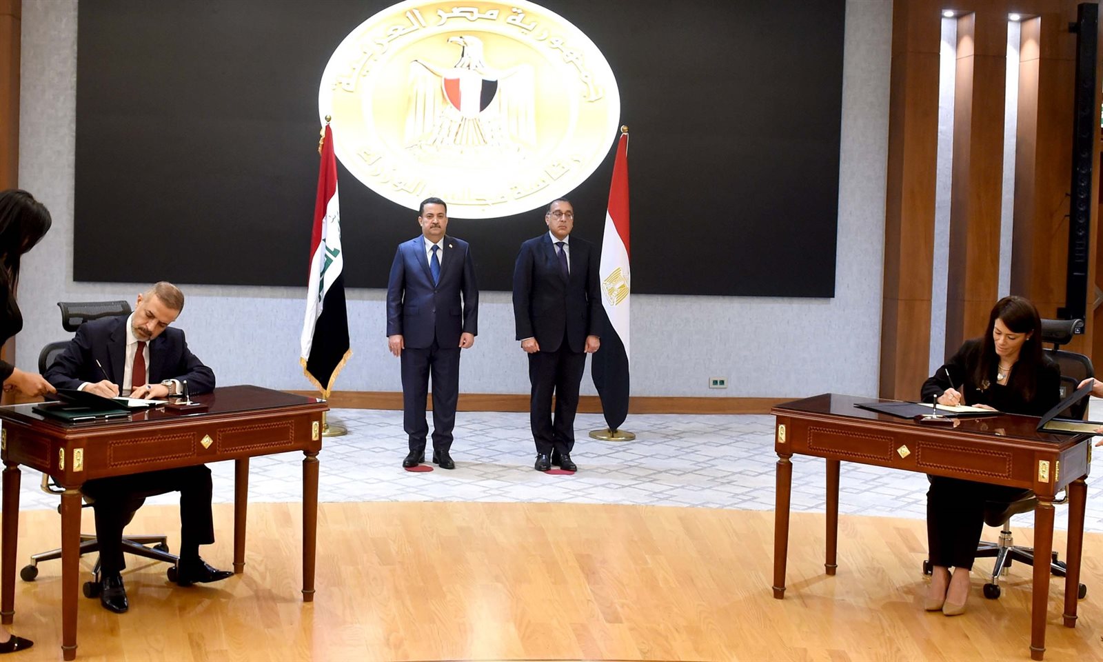 كما تم التوقيع على محضر اجتماعات الدورة الثانية للجنة العليا المصرية العراقية المشتركة، وقعه عن الجانب العراقي المهندس محمد شياع السوداني، رئيس مجلس الوزراء بجمهورية العراق، وعن الجانب المصري الدكتور مصطفى مدبولي، رئيس مجلس الوزراء بجمهورية مصر العربية.