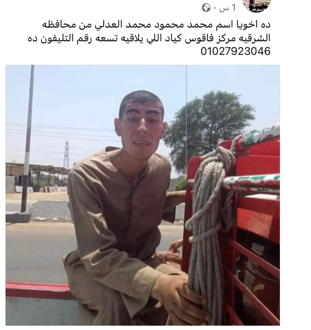 وتم التعرف عليه عقب تداول صور الشخص وتبين أنه مفقود من أسرته، وأنه مشرد بالشوارع وجاء لـ محافظة بورسعيد لفقدانه السيطرة علي تصرفاته، وتبين أن اسرته كانت تبحث عنه للعثور عليه.
