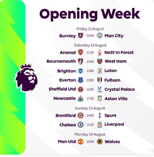 وجاءت مواعيد مباريات الأسبوع الأول في الدوري الإنجليزي للعام الجديد 2023-2024 كالاتي: