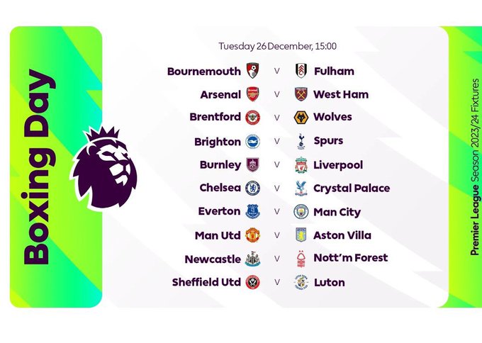 كشفت رابطة الدوري الإنجليزي عن مواعيد جدول مباريات "البوكسينج داي" الشهير في الدوري الإنجليزي للموسم الجديد 2023-2024.