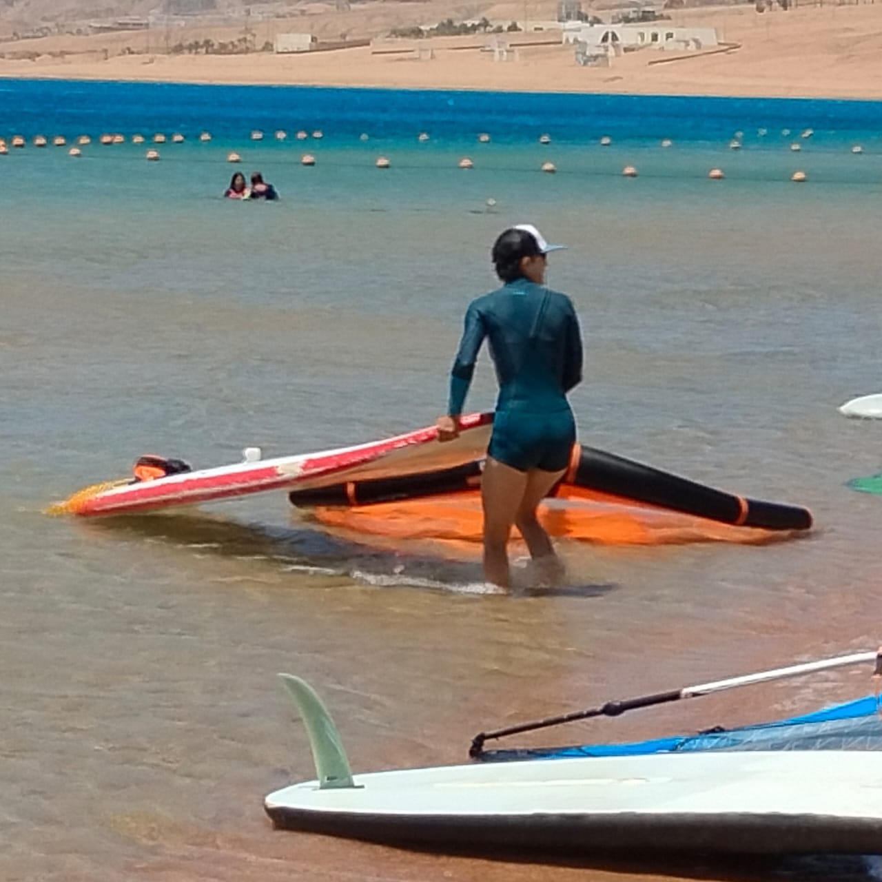 دقوا الشماسى على البلاج.. إقبال كبير من السياح على شواطئ مدينة دهب لممارسة رياضة الشراع